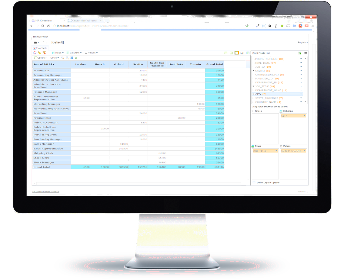 drag-and-drop functionality filtering & drill-down customizable sub- & grand totals